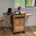 This top doubles to create a work surface measuring 56 cm x 134 cm. Thanks to its height of 94 cm, this space is at an ideal height for cutting patterns and fabrics. When the top is folded down, the unit returns to its original dimensions of 56.5 x 69.5 x 94 cm.